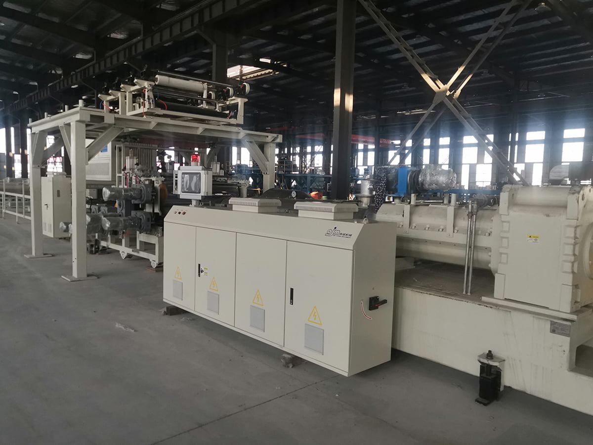 The basic theory is to extrude the core plate and calendaring, filming, compositing wear layer, and embossing in one step through a four-roller or five-roller system.
