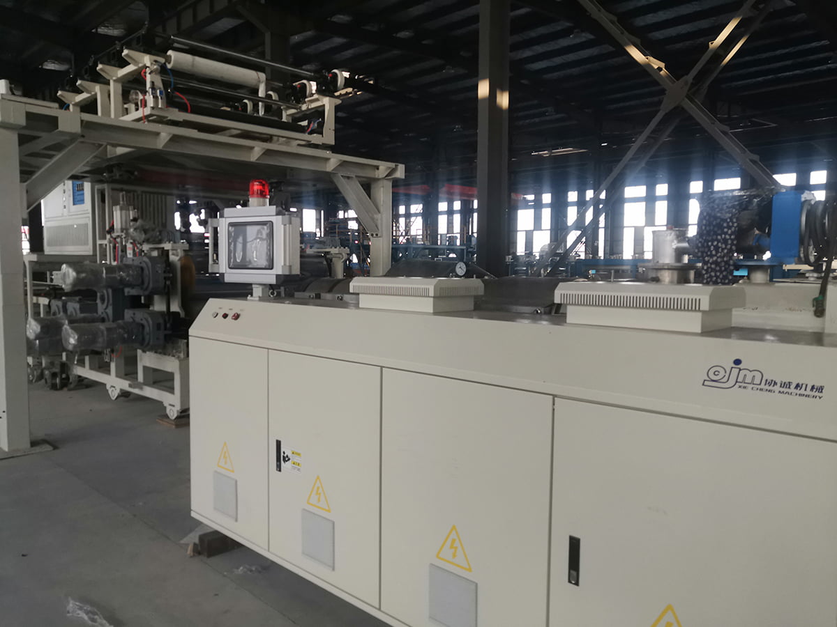 The SPC stone plastic flooring composite production line integrates a PLC control system and a human-machine interface, enabling fully automated production from feed to finished product, significantly reducing manual intervention. The energy-saving and environmentally friendly design utilizes high-efficiency servo motors and a heat recovery system, saving over 30% energy compared to traditional production lines. No wastewater is discharged during the production process, complying with green manufacturing requirements. Precision quality control, equipped with advanced testing equipment such as online thickness gauges and defect detection systems, monitors product quality in real time, ensuring a product qualification rate exceeding 99%.